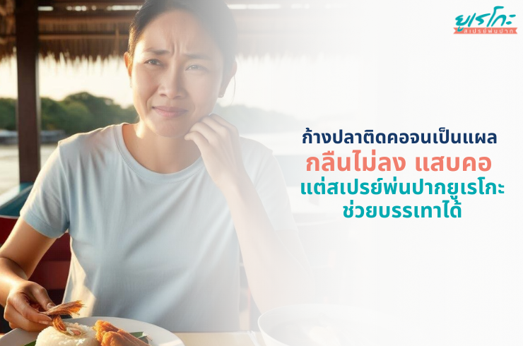 A: กลืนข้าวหรือกล้วยช่วยดันก้างปลาให้หลุดออก แต่หากเกิดแผลในลำคอ สามารถใช้ Eureko Mouth Spray เพื่อลดอาการเจ็บแสบและช่วยสมานแผลได้