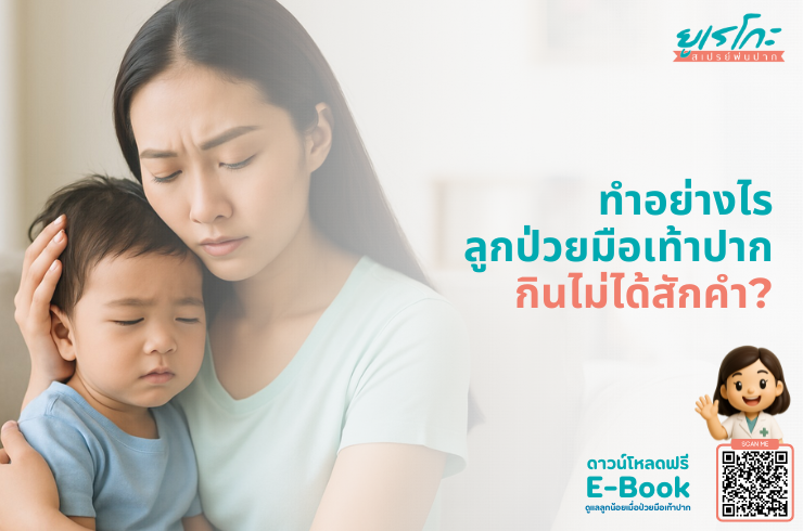 โรคมือเท้าปากแม้จะหายได้เองใน 7–10 วัน แต่สิ่งที่สร้างความทุกข์ใจที่สุดคือ ลูกมีแผลในปากจนกินอะไรไม่ได้ ซึ่งอาจนำไปสู่ภาวะขาดน้ำและอ่อนเพลีย การดูแลที่ถูกต้องคือ ให้อาหารอ่อน จิบน้ำบ่อย และใช้สเปรย์พ่นปาก Eureko Mouth Spray เพื่อบรรเทาความเจ็บและทำให้ลูกกลับมากินได้