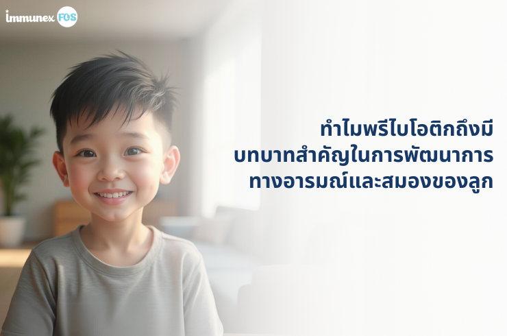 นอกจากพรีไบโอติกจะช่วยในเรื่องการเสริมแบคทีเรียดีในลำไส้และทำให้ระบบขับถ่ายดีขึ้น ยังมีผลดีต่อการพัฒนาสมองและอารมณ์ของลูกอีกด้วย การมีลำไส้ที่แข็งแรงทำให้สมองทำงานได้อย่างเต็มที่ ลูกสามารถรับมือกับความเครียดได้ดี มีสมาธิในการเรียนรู้ และมีอารมณ์ที่สงบและมั่นคง การเสริมพรีไบโอติกในอาหารประจำวันจึงเป็นวิธีที่ดีในการบำรุงลำไส้และสมองของลูกให้เติบโตอย่างแข็งแรงและสมดุล