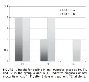Figure 2: Decrease in mucositis incidence and severity among cancer patients using PVP Gel from the onset of treatment.