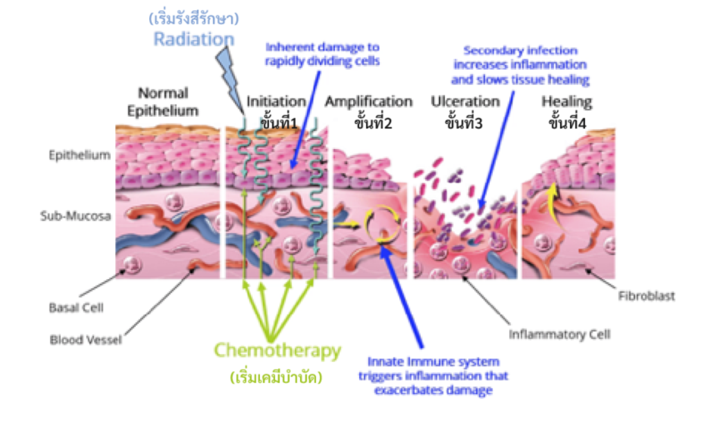ขั้นตอนการเกิดภาวะเยื่อบุช่องปากอักเสบ