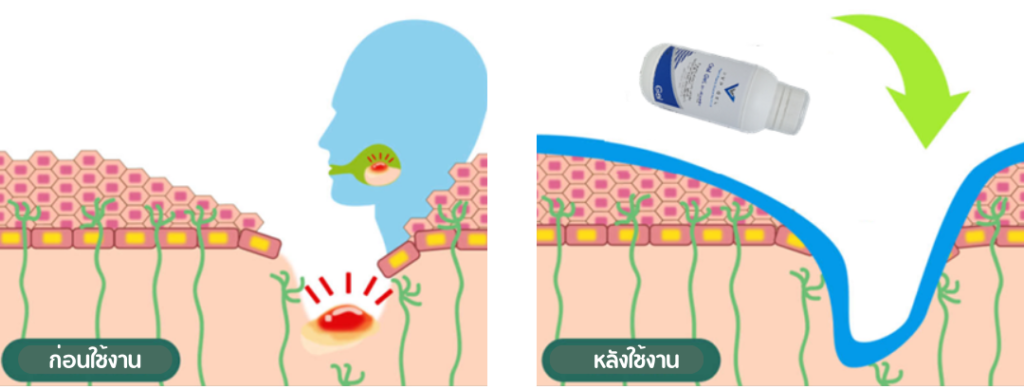 ช่วยลดความรู้สึกแสบร้อน และลดการเจ็บปวดแผลในปากได้ทันที ทำให้สามารถพูดได้ ทานอาหาร ดื่มน้ำ หรือกลืนน้ำลายได้ดีขึ้น
